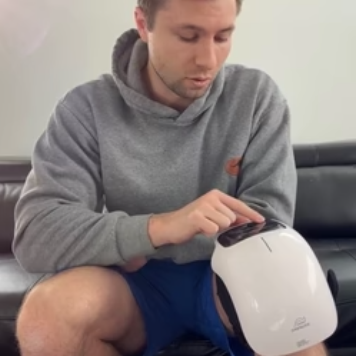 Vibrasjon fra Knevital:Samtidig gir Knevital en mild vibrasjon. Vibrasjonen hjelper med å løsne spenninger og kan dempe smerter i kneet.
